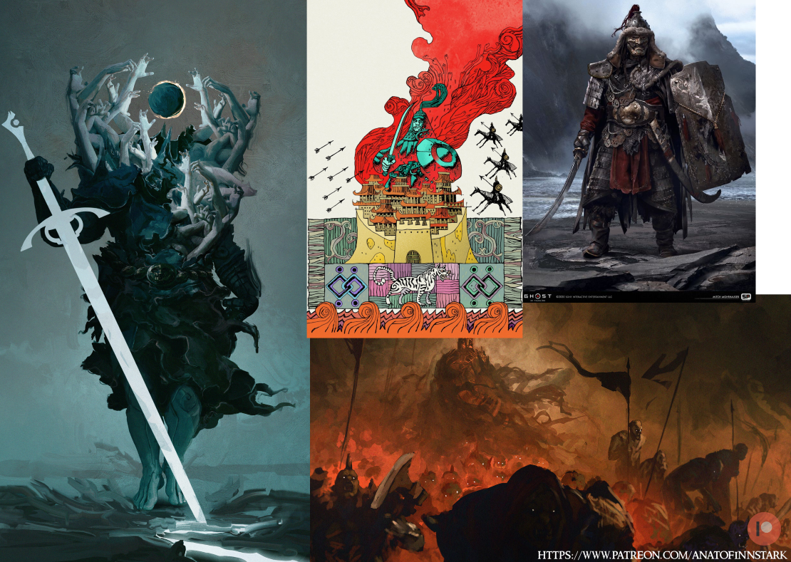 Some of the visual inspiration from the reference folder. Artwork by Anato Finnstark, Artyom Trakhanov and Mitchell Mohrhauser.